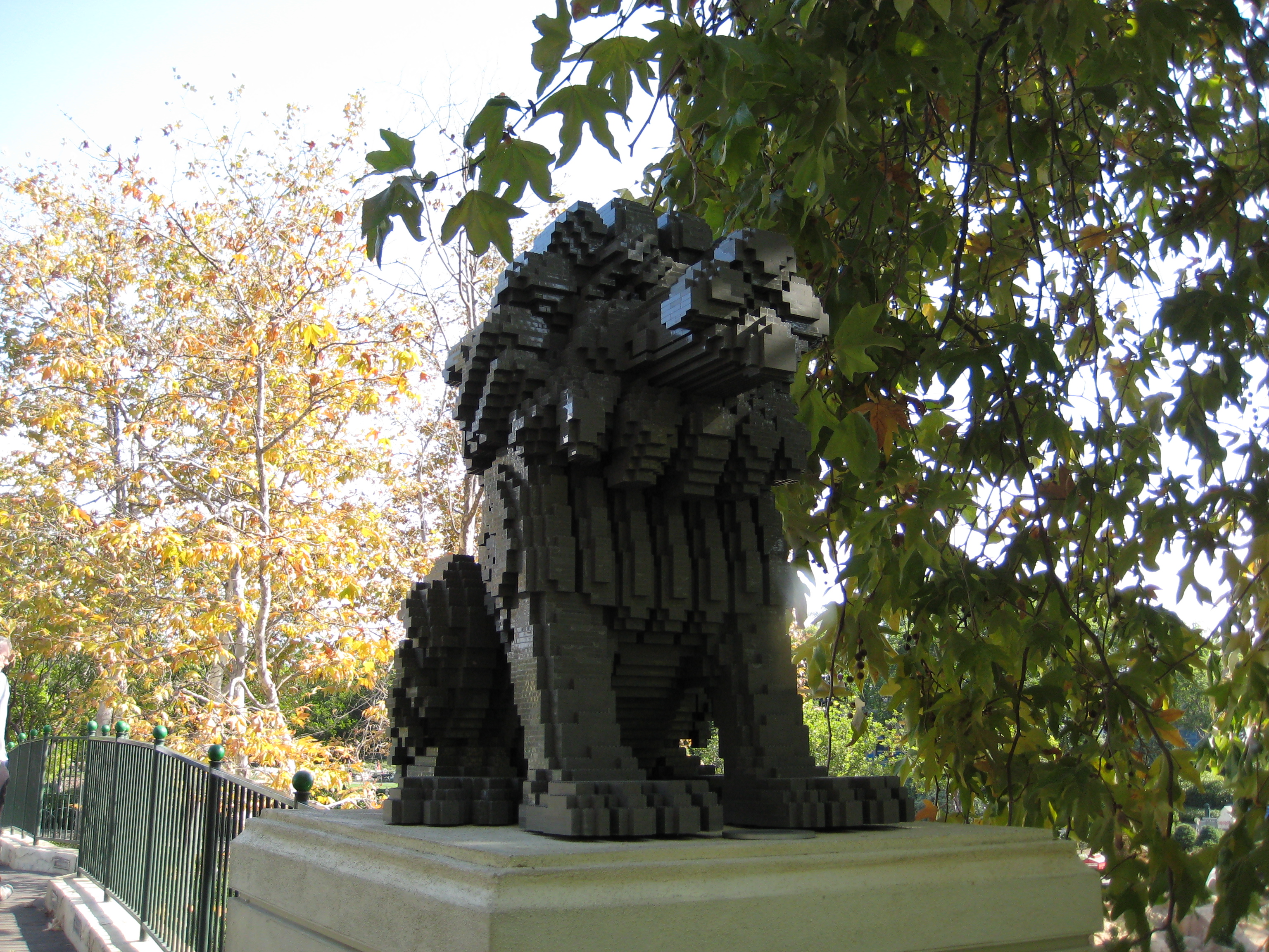 Lion sculpture on the entrance to the bridge leading to Legotown, U.S.A. (at the Legoland in San Diego County.)