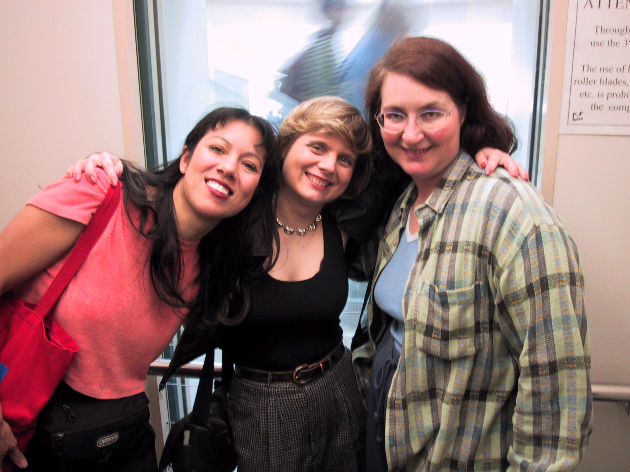 Here’s a picture that David Coons took in the spring of 2001 (or was it 2002?) of Caroline Pfouts, Sandra Tsing Loh, and me.